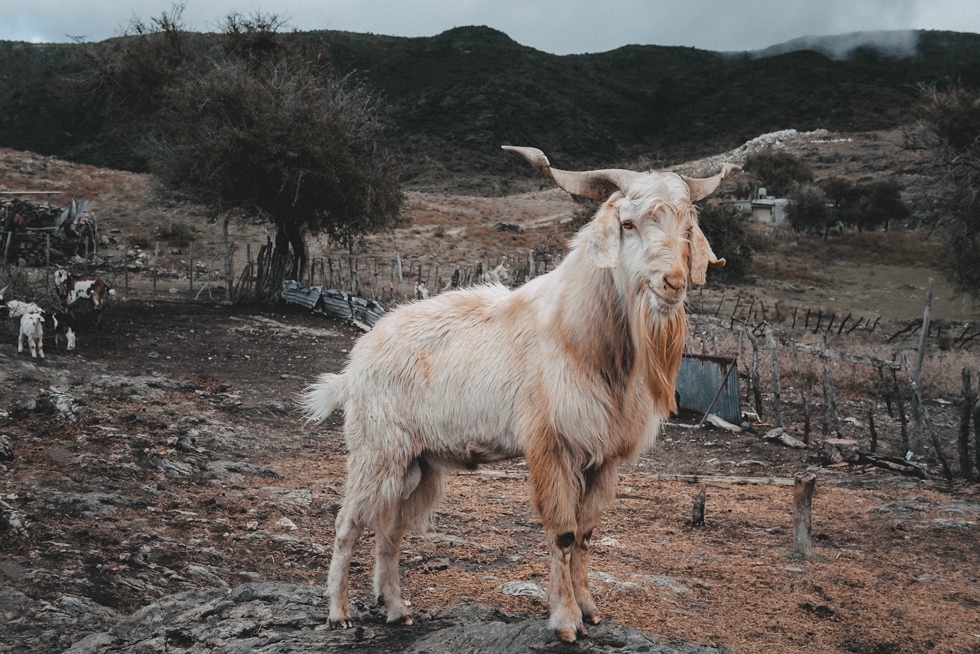 Chivo pastando en las sierras de Cordoba, Argentina. Goat grazing in the mountains of Cordoba, Argentina.