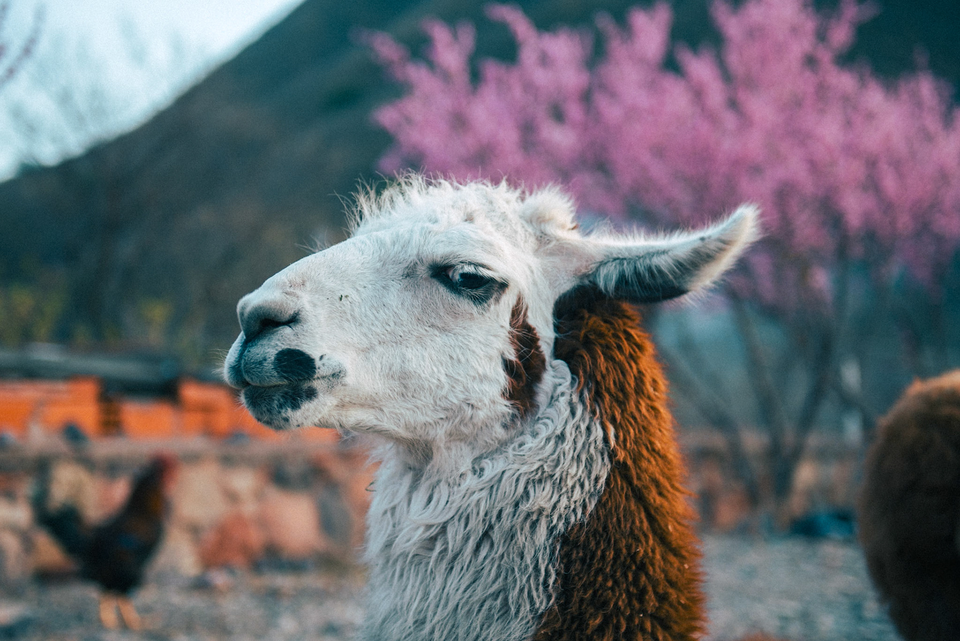 Manada de llamas en el parque nacional Los Glaciares National. El Chalten, Argentina.